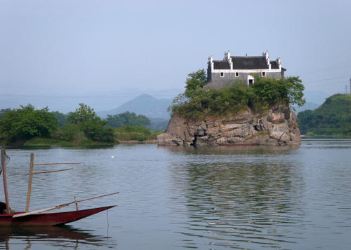 香零山為天然石磯結(jié)構(gòu),地處中流,隨瀟水水勢(shì)而展現(xiàn)不同的風(fēng)光,勢(shì)浩蕩則如汪洋中之一小舟,水勢(shì)弱小則島亭昭然挺立。若雨后日出,煙鎖山腳,霧雨朦朧,往來舟楫,若隱若現(xiàn),給人一種煙波浩渺的意境,因而有“香零煙雨”之稱,為永州八景之一。