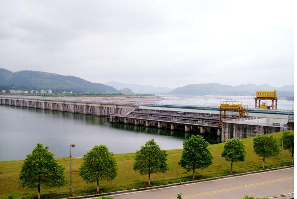大壩的西面,是水利發(fā)電站,電站共有4臺機(jī)組,年發(fā)電量已達(dá)到5.56億千瓦小時。船閘座落在大壩的東側(cè),一次可通行二艘千噸級輪駁船隊。