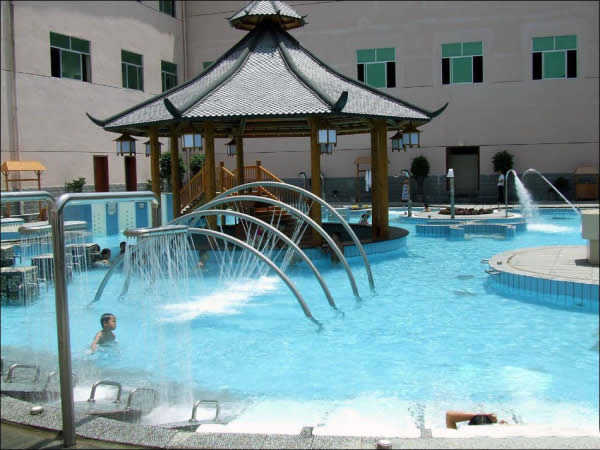 慈利縣萬(wàn)福溫泉 萬(wàn)福溫泉以福為文化為背景,建有四星級(jí)溫泉酒店(萬(wàn)福樓),有140多間標(biāo)準(zhǔn)雙人房、單人房、豪華套房及董事套房;中、大型會(huì)議室、多功能宴會(huì)廳3間;以福文化為基礎(chǔ),在萬(wàn)福溫泉的朝陽(yáng)地帶建設(shè)40多個(gè)功能各異、大小不一、錯(cuò)落有秩的室內(nèi)SPA池、露天溫泉池,另有貴賓休息廳、香薰屋、山頂溫泉沖浪、空中溫泉漂流等靜、動(dòng)態(tài)溫泉養(yǎng)生娛樂(lè)項(xiàng)目,把福文化溶入到自然的溫泉沐浴中,使廣大游客在福文化的環(huán)繞中享受大自然獨(dú)特的恩賜;餐飲部擁有300多人的用餐大廳及包房,推出湘菜系列、突出地方名菜、土家風(fēng)味,集百家之長(zhǎng),創(chuàng)獨(dú)特風(fēng)味。另有KTV、桑拿、保健、美容、棋牌、臺(tái)球、健身房、購(gòu)物中心等娛樂(lè)及其它配套設(shè)施。整個(gè)建筑別具一格,氣勢(shì)恢弘,功能完善,堪稱(chēng)張家界溫泉旅游的又一大奇觀。