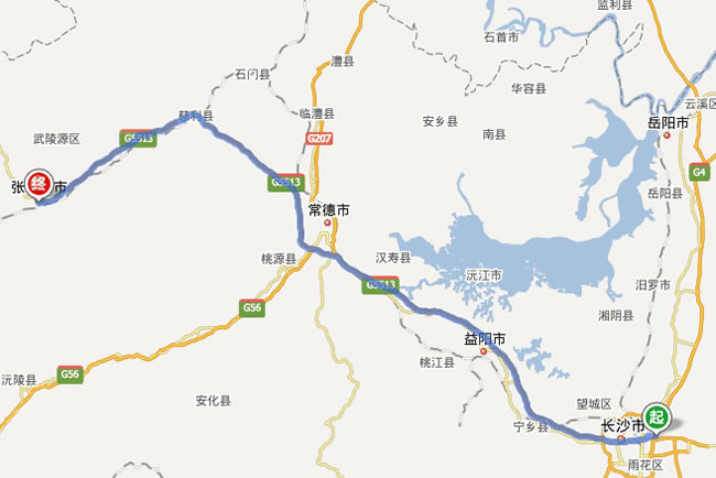 長(zhǎng)沙市到張家界自駕車路線圖