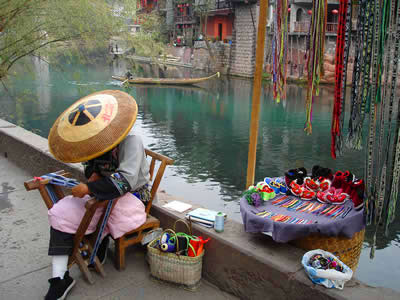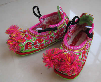 刺繡 刺繡。是土家姑娘在直紋平布上,按照布紋的經(jīng)緯和預(yù)先繪畫的花樣與底色不同的絲線繡成圖案。舊時姑娘們穿的繡花衣服,繡有服飾花邊、胸花、帽花,此外繡花枕頭、繡花荷包等也是精巧的手工工藝品。土家刺繡在配色上有自己的講究與習(xí)慣,一般選用青、藍(lán)、大紅等深色布料作底布,用淺色繡線制作圖案,或者相反,兩種用法的結(jié)果使繡品顯得質(zhì)樸逼真,色澤鮮艷,對比強(qiáng)烈。傳統(tǒng)圖案有“花開富貴”、“龍鳳呈祥”、“鴛鴦戲水”、“喜鵲鬧梅”、“松鶴同壽”等,分室內(nèi)、衣著、工具、行李裝飾等多種種類。在景區(qū),土家婦女邊繡邊賣的精美鞋墊,深受海內(nèi)外游客喜愛。