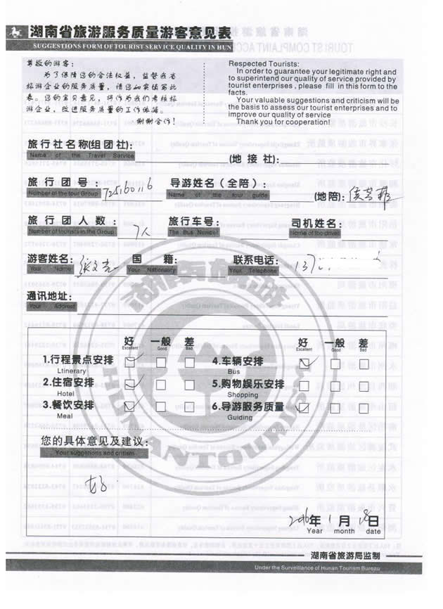 【該游客接待反饋意見單掃描】