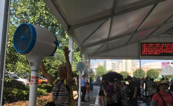 為更好的為游客防暑降溫,天門山景區(qū)特別在索道站、山門等候區(qū)增設大型遮陽棚,作為游客等候休息區(qū),并在等候區(qū)內安裝數十個室外冷霧降溫風機和直飲水點。