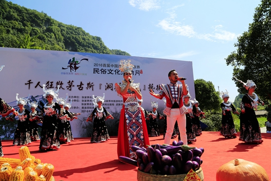 7月29日上午9點(diǎn)30分,由張家界市人民政府主辦,張家界市委宣傳部、市旅游和外事僑務(wù)委員會(huì)、市文體廣電新聞出版局、武陵源區(qū)人民政府承辦,黃龍洞景區(qū)協(xié)辦的“絕版張家界,最炫民族風(fēng)”張家界民俗活動(dòng)月第三場(chǎng)活動(dòng)在黃龍洞景區(qū)啟動(dòng),F(xiàn)場(chǎng)以土家人慶祝豐收的鼓舞拉開(kāi)序幕,土家鼓舞歡悅的節(jié)奏,夸張的舞姿開(kāi)場(chǎng)就吸引了幾千游人和當(dāng)?shù)厝擞^看。草根夫妻檔歌手,張家界“山水組合許勇、舒維亮麗的服飾,野性的嗓音……”以一首《我在高山唱》歌曲,征服現(xiàn)場(chǎng)游客,贏得雷鳴般的叫好聲。