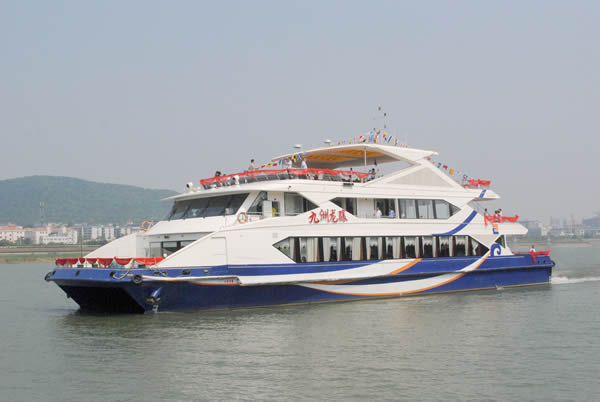 九洲龍?bào)J豪華游船船長(zhǎng)42米,寬12米,擁有280個(gè)客位,游輪采用了國(guó)際先進(jìn)的造船技術(shù),流線型的外觀設(shè)計(jì)、造型典雅時(shí)尚。船身共分為3層,可滿足游客餐飲、觀光、娛樂、會(huì)務(wù)等多種需求。